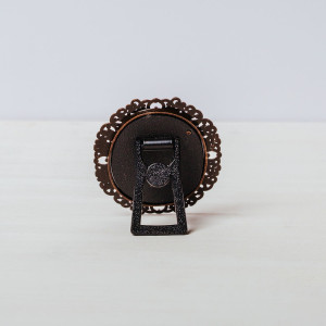 Rama este din metal cu aspect vintage, iar spatele ei, respectiv suportul de sprijin sunt din plastic.