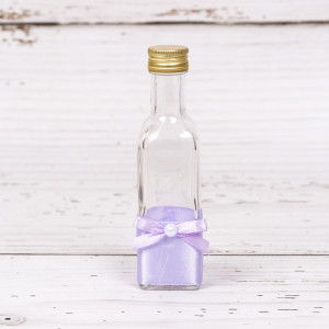 Daca esti mama de fetita si ai decis ca decorul predominant de la botezul micutei sa fie lila, atunci si sticluta de mir poate avea acelasi decor.