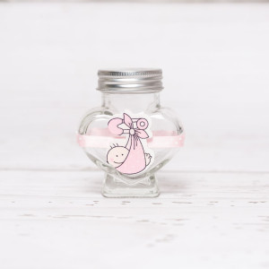 Pentru botezul unei fetite dragalase, nasii acesteia pot alege o sticluta de mir cu figurina fetita si banda roz cu buline albe. Familia micutei sau parintii sai spirituali vor umple sticluta cu ulei din comert (de floarea-soarelui sau de masline) si preotul va sfinti uleiul in biserica inainte sa il foloseasca la taina botezului.