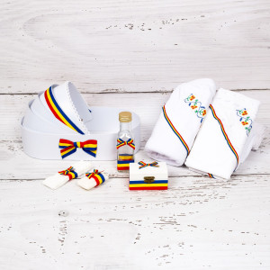 Trusoul cu model traditional si tricolor este alegerea ideala atat pentru botezul unui baietel, cat si pentru botezul unei fetite.