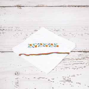 - Prosopul bebelusului este in ton cu panza de mir si are acelasi model traditional cu banda tricolor la baza triunghiului. Acesta este realizat din bumbac de inalta calitate, ce nu irita pielea. Prosopul moale si pufos este folosit la biserica pentru stergerea bebelusului dupa botez. Dimensiuni: 75 cm lungime x 70 cm latime