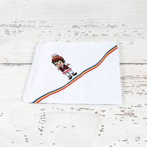 - Prosop cu capison pentru bebelus, folosit pentru stergerea copilasului scos din cristelnita, imediat dupa botez. Prosopul este decorat la fel ca panza de mir. Dimensiuni: 83x74 cm.