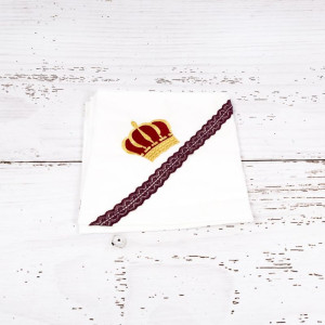Pentru un botez in note regale, parintii spirituali ai unui bebelus pot alege un trusou botez in landou coronita regala cu decor grena. Landoul, dar si celelalte piese din trusou, cu exceptia prosoapelor si a panzei de mir sunt decorate manual in Atelierul SelfEvents.ro cu banda si fundite asortate cu broderia grena coronita regala.