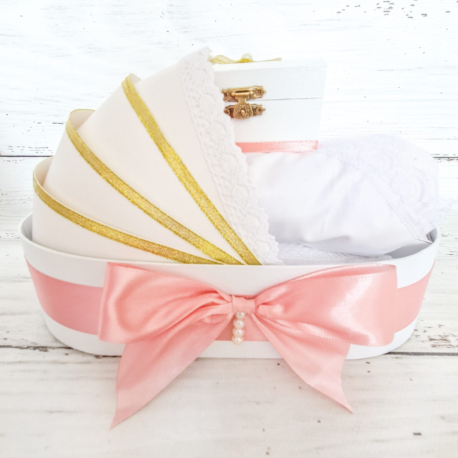 Trusoul botez este compus din urmatoarele piese ambalate in cutie tip landou: