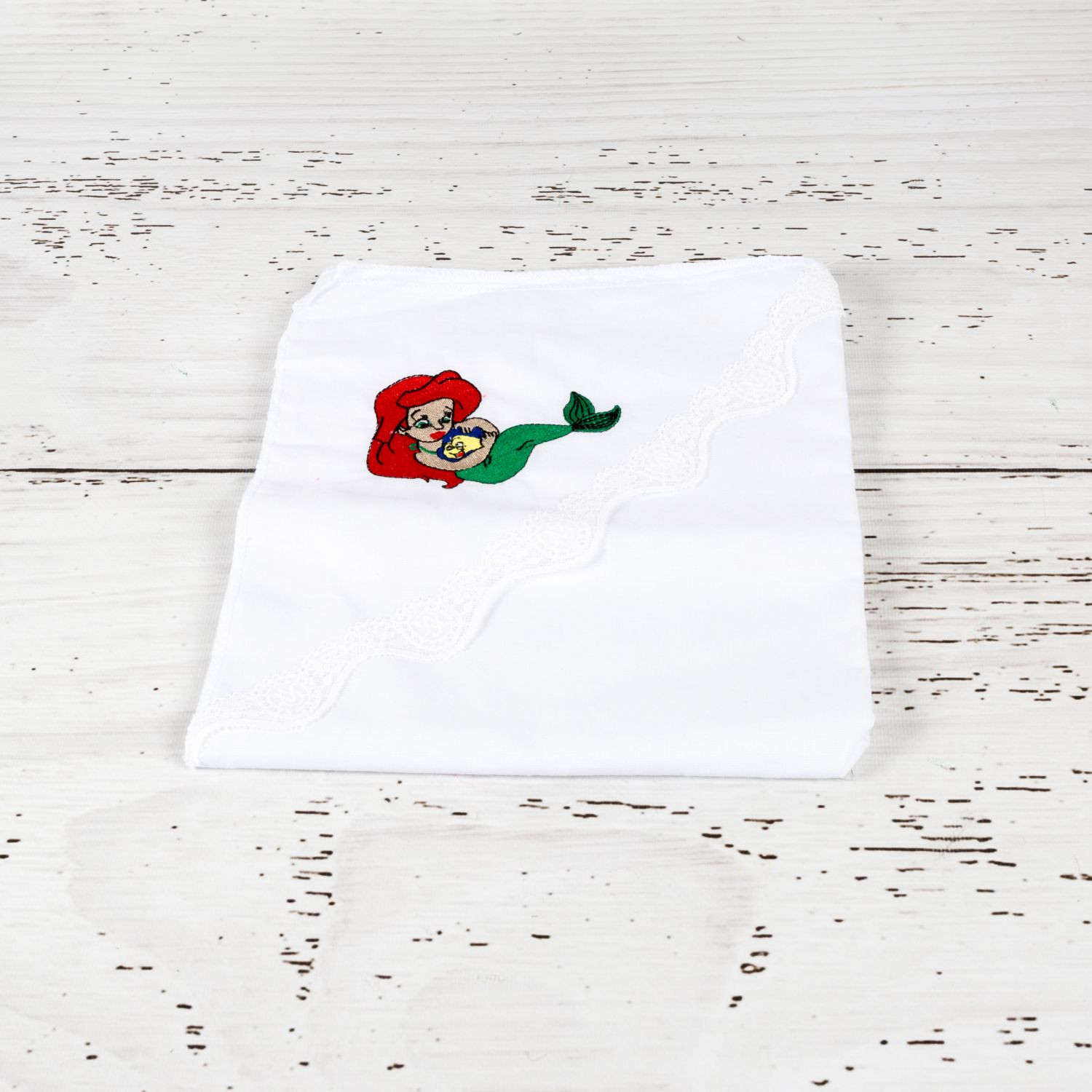 - panza de mir pentru bebelus cu imaginea Micii Sirene. Modelul este brodat. Dimensiuni: 105 x 98 cm.
