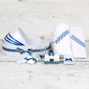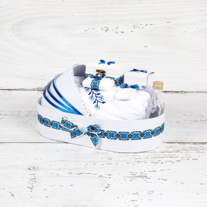 Unul dintre cele mai dragute trusouri biserica in stil traditional pe care o nasa de baiat il poate achizitiona pentru botezul finului ei este trusoul cu model traditional albastru. Acesta are o broderie in stil etno pe panza de mir, dar si pe prosopul bebelusului, in timp ce paturica pentru copil si prosopul preotului sunt albe.