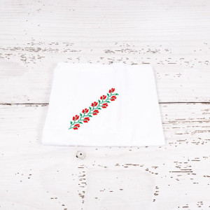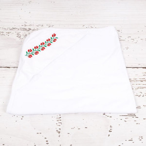 - Prosop bebelus din bumbac moale cu capison. Prosopul are model traditional, cu broderie in rosu si verde. 75 x 73 cm
