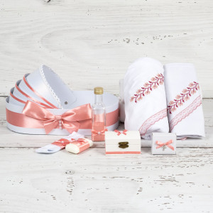 Acesta are o broderie in stil traditional pe panza de mir, dar si pe prosopul bebelusului, in timp ce paturica pentru copil si prosopul preotului sunt albe.