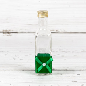 - Sticluta mir folosita pentru mirungerea bebelusului. Aceasta este decorata cu satin verde si fundita asortata. Dimensiuni: 15 cm inaltime x 4 cm lungime x 4 cm latime. Capacitate 100 ml