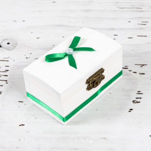 - Cutiuta pentru prima suvita in forma unui frumos cufar de lemn cu banda si fundinta verde. Dimensiuni cutie mot/turta: 9 cm x 5,5 cm x 5 cm (L x l x H).
