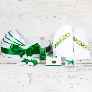 In timp ce panza de mir si prosopul bebelusului au model brodat, iar prosopul preotului si paturica sunt albe, celelalte piese din trusou sunt decorate manual in Atelierul SelfEvents.ro.