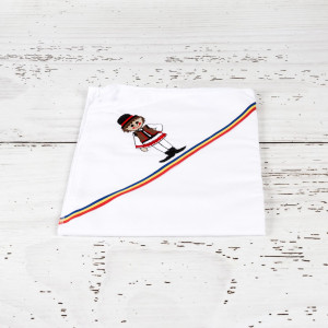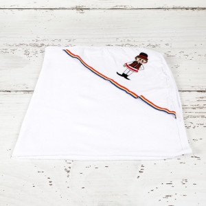 - Prosop bebelus din bumbac moale cu capison. Acesta are model dansator popular brodat. Dimensiuni: 76 x 73 cm