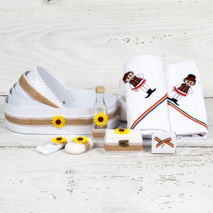 Un trusou botez in stil rustic cu dansatori populari, iuta, banda tricolor si floarea-soarelui este alegerea perfecta pentru evenimentele organizate in mediul rural si nu numai.