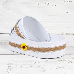 - Cutiuta pentru prima suvita in forma unui frumos cufar de lemn decorat cu iuta si figurina floarea-soarelui. Dimensiuni cutie mot/turta: 9 cm x 5,5 cm x 5 cm (L x l x H).