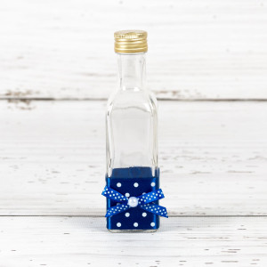 - sticluta de mir frumos decorata cu banda satinata de culoare bleumarin si fundita asortata. Dimensiuni: 15 cm inaltime x 4 cm lungime x 4 cm latime. Capacitate 100 ml.