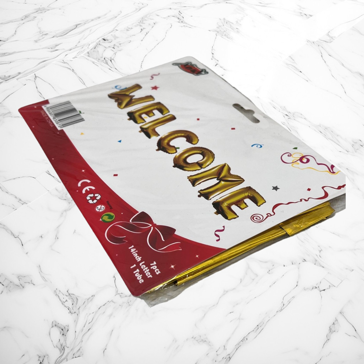 Baloanele Welcome sunt realizate din folie de aluminiu, au aspect metalizat, iar o litera masoara aproximativ 35 cm inaltime.