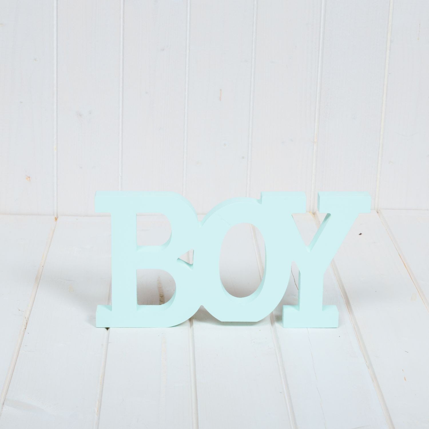 Marcheaza prima petrecere din viata baietelului tau si alege pentru botezul sau o decoratiune sugestiva formata din trei litere de culoare bleu: BOY (baiat).