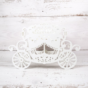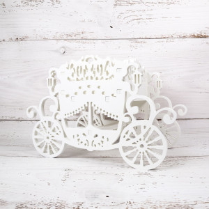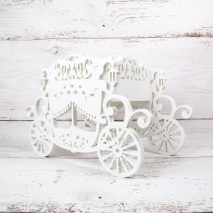 Aceasta caleasca alba de poveste poate fi folosita la petrecerea de nunta ca piesa decorativa. Caleasca este realizata din PVC. Frumoasa caleasca este potrivita pentru o nunta la castel in stil clasic sau vintage.