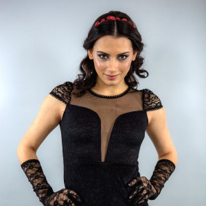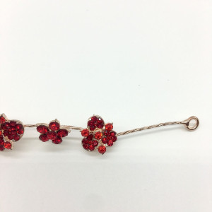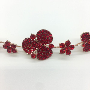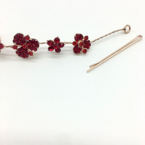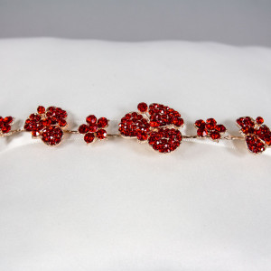 Pentru ca florile sunt gingase, iar cristalele de culoare rosu rubiniu simbolizeaza dragostea, o mireasa delicata si romantica va fi incantata sa poarte la nunta un accesoriu de par cu flori rosii, realizat din metal.