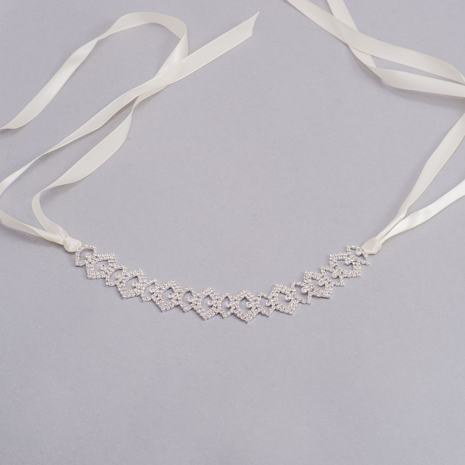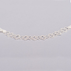 Acest accesoriu deosebit cu suport argintiu maleabil de care sunt prinse zeci de pietricele strass este perfect de purtat la o rochie de mireasa minimalista.
