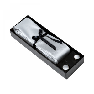 Cravata si butonii sunt ambalati intr-o cutie de carton cu capac transparent, speciala pentru prezentarea produselor.
