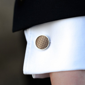Adauga la cravata eleganta de culoare maro o pereche de butoni camasa de forma rotunda, pentru o impresie de durata.