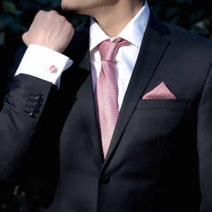 Comanda acum produsul "Set rose quartz cravata, batista si butoni camasa".