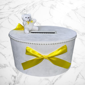 Cutie de dar cu ursulet, funde galbene