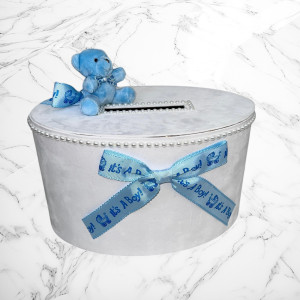 Comanda acum produsul "Cutie de dar cu ursulet, funde It s a boy".