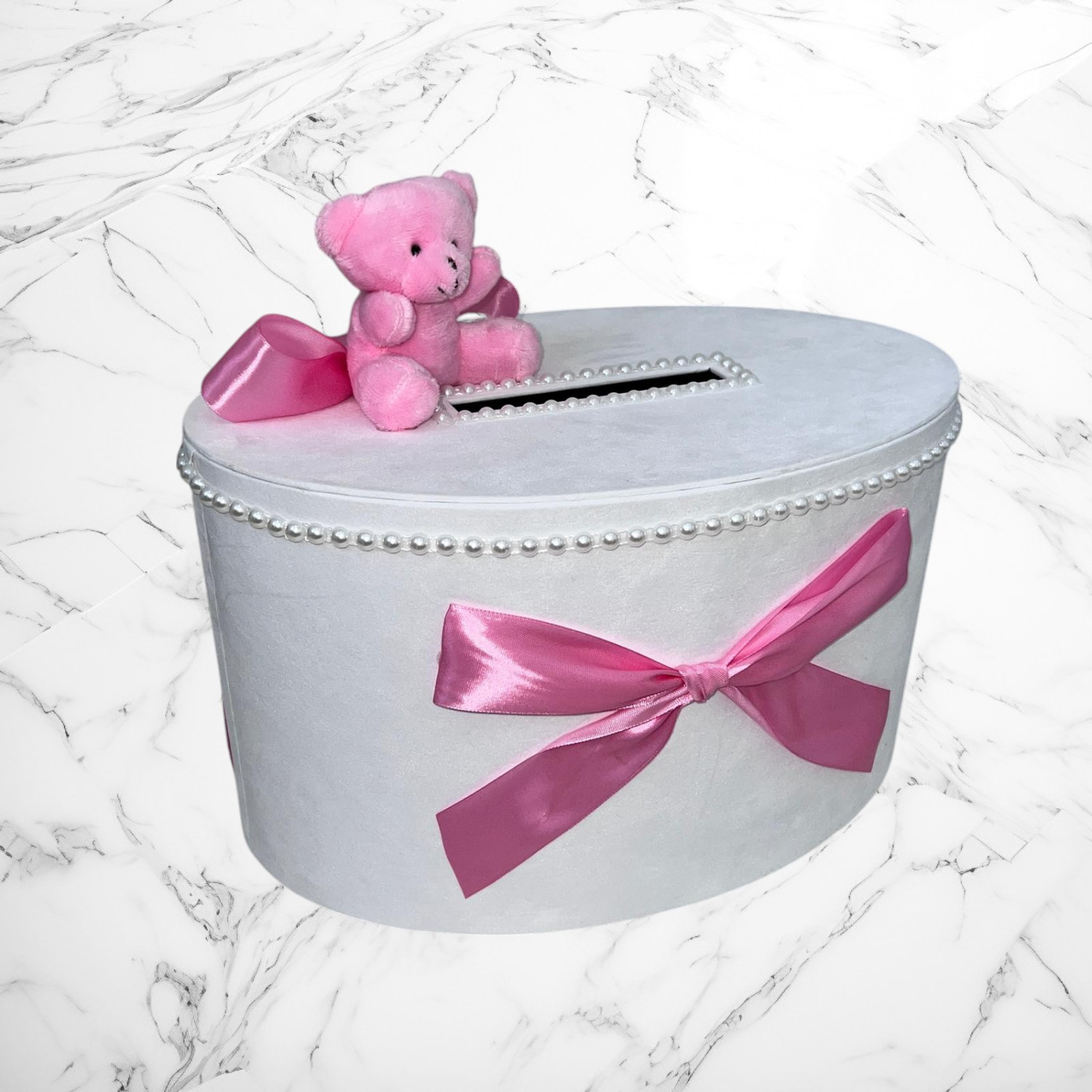 Comanda acum produsul "Cutie de dar fetite cu ursulet si funda roz".