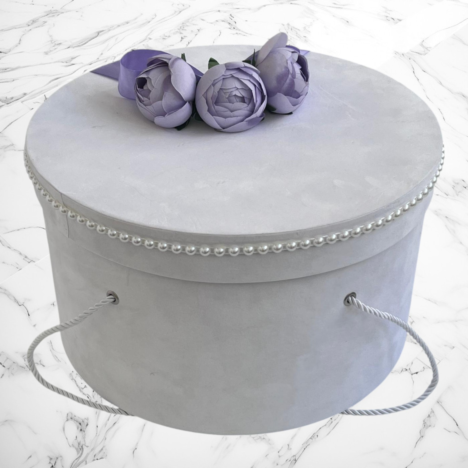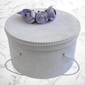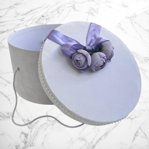 Comanda acum produsul "Cutie hainute pentru botez bujor si fundita lila".