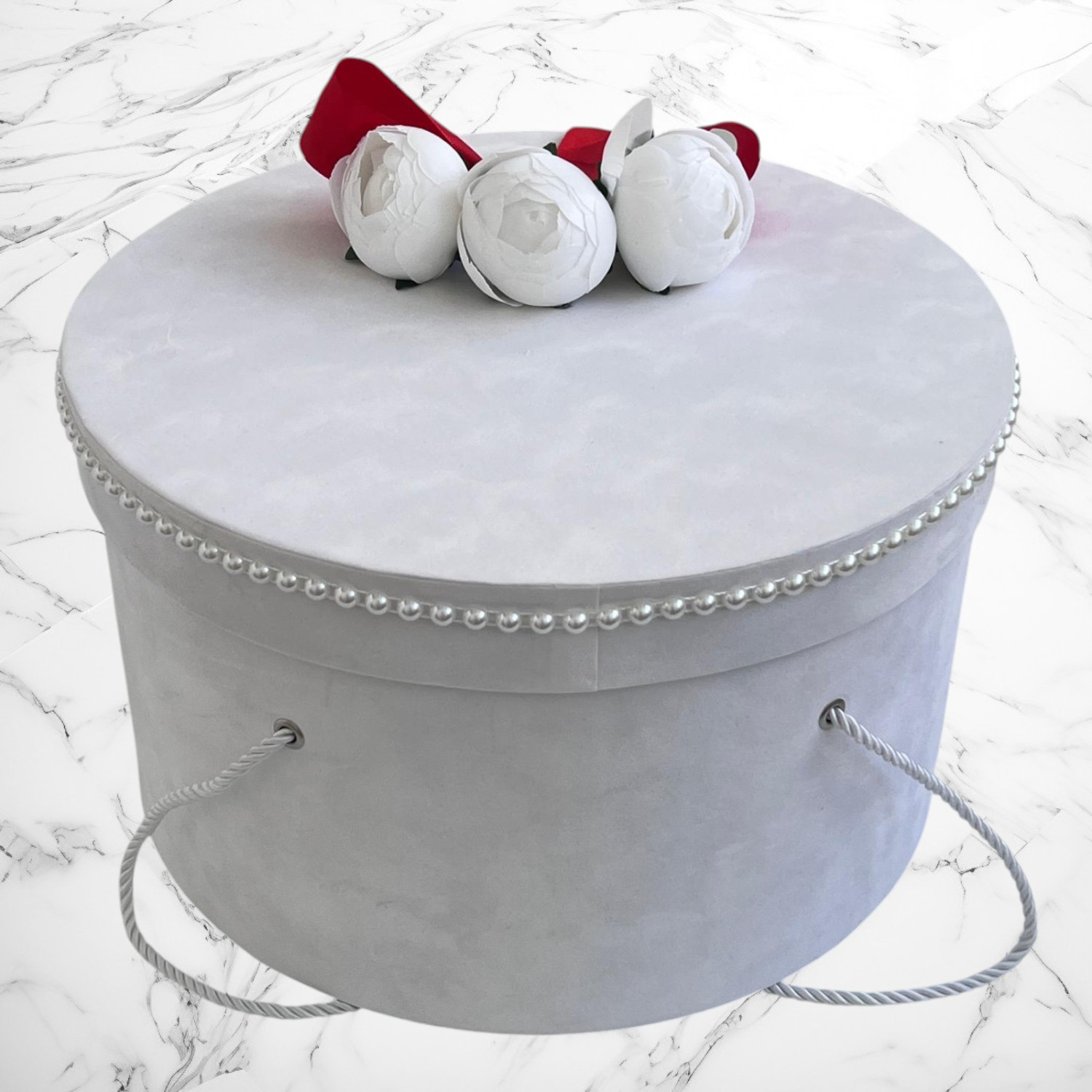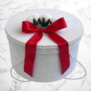 Comanda acum produsul "Cutie hainute pentru botez bujor si fundita rosie".