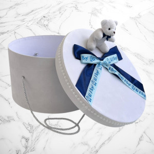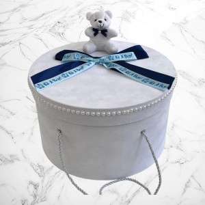 Comanda acum produsul "Cutie trusou botez ursulet plus si funda bleumarin it s a boy".