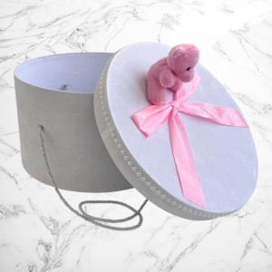 Comanda acum produsul "Cutie trusou botez ursulet si funda roz cu buline".