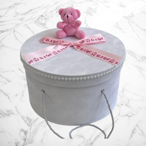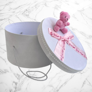 Comanda acum produsul "Cutie trusou botez ursulet si funda roz It s a girl".