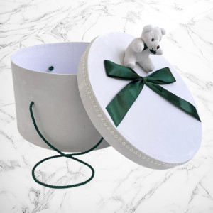 Comanda acum produsul "Cutie trusou botez ursulet si funda verde inchis".
