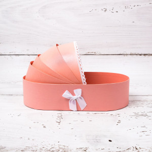 Aceasta cutie roz va fi pastrata ca amintire dupa botez. Cutia este confectionata din carton de calitate, iar partea superioara arata ca un acoperis de carucior cand este deschisa. Aceasta este decorata cu fundita alba si are bordura din dantela.