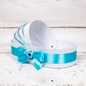 Cu un design atractiv, cutia este confectionata din carton de calitate. Aceasta se deschide asemeni unui carucior si este decorata manual in atelierul SelfEvents.ro.