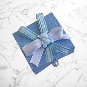 Transformă primul tuns al bebelușului într-o amintire de neuitat! Această cutiuță elegantă pentru moț este ideală pentru păstrarea primului fir de păr, fiind și un cadou adorabil pentru botez sau aniversare. Decorată cu o fundiță bleu și un ursuleț simpatic, cutiuța oferă un aer jucăuș și elegant în același timp.