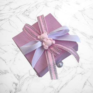 Transformă primul tuns al bebelușului într-o amintire de neuitat! Această cutiuță elegantă pentru moț este ideală pentru păstrarea primului fir de păr, fiind și un cadou adorabil pentru botez sau aniversare. Decorată cu o fundiță roz și un ursuleț simpatic, cutiuța oferă un aer jucăuș și elegant în același timp.