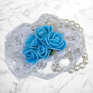 Materiale: dantela, margele tip perla, trandafiri spuma.