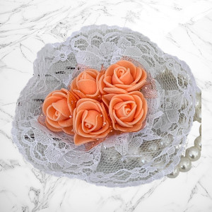 Materiale: dantela, margele tip perla, trandafiri spuma.