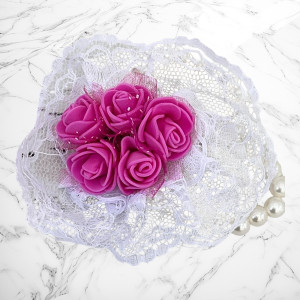 Materiale: dantela, margele tip perla, trandafiri spuma.