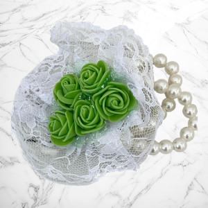 Cele mai frumoase si elegante corsaje pentru domnisoarele de onoare sunt bratarile cu margele si buchet de flori format din cinci trandafiri verzi, imprejmuiti de dantela.