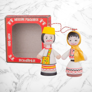 Acest mărțișor autentic aduce în prim-plan tradițiile din zona Oașului, fiind realizat din lemn de calitate superioară și pictat manual cu măiestrie. Figurinele reprezintă costume populare specifice regiunii Oaș, renumite pentru broderiile complexe și culorile vii. Fiecare detaliu al costumului este reprodus cu atenție, reflectând autenticitatea și frumusețea portului popular oșean.