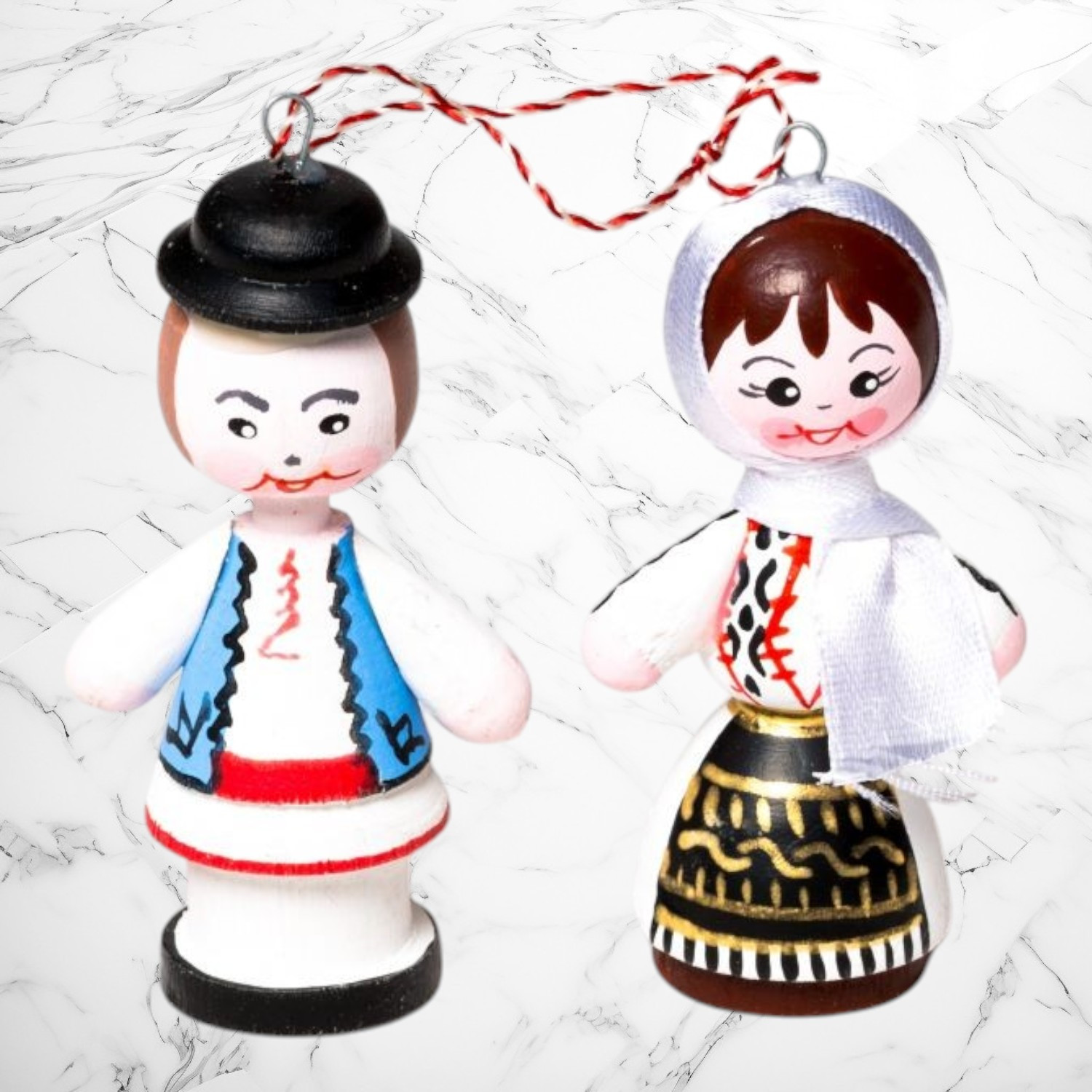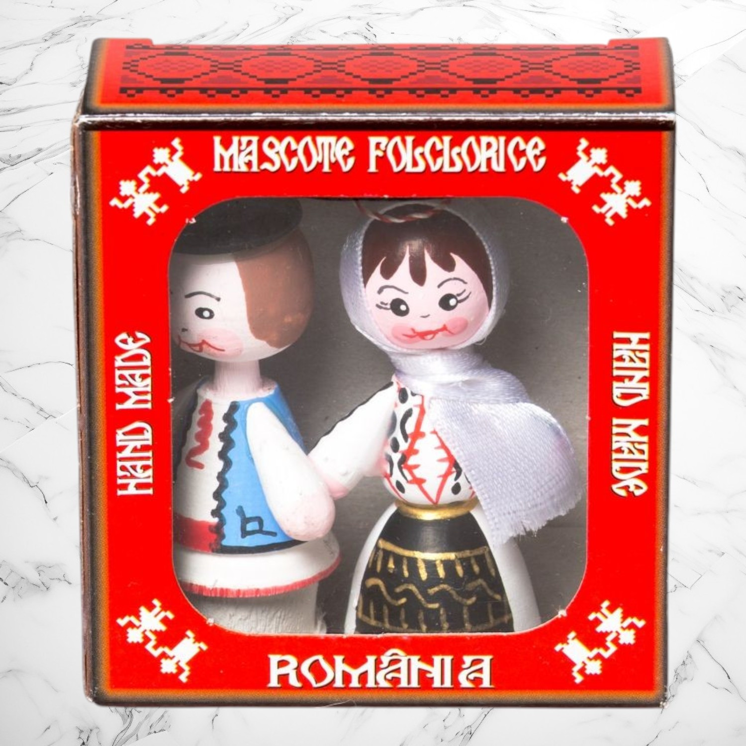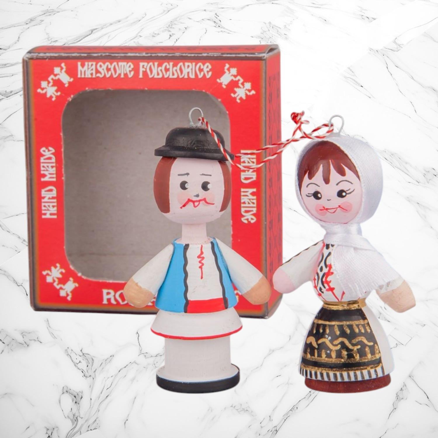 Acest mărțișor special celebrează frumusețea portului popular din zona Oltului, prin figurine din lemn realizate cu grijă și pictate manual. Costumele tradiționale sunt redate cu fidelitate, evidențiind broderiile specifice și combinațiile de culori autentice care definesc această regiune.