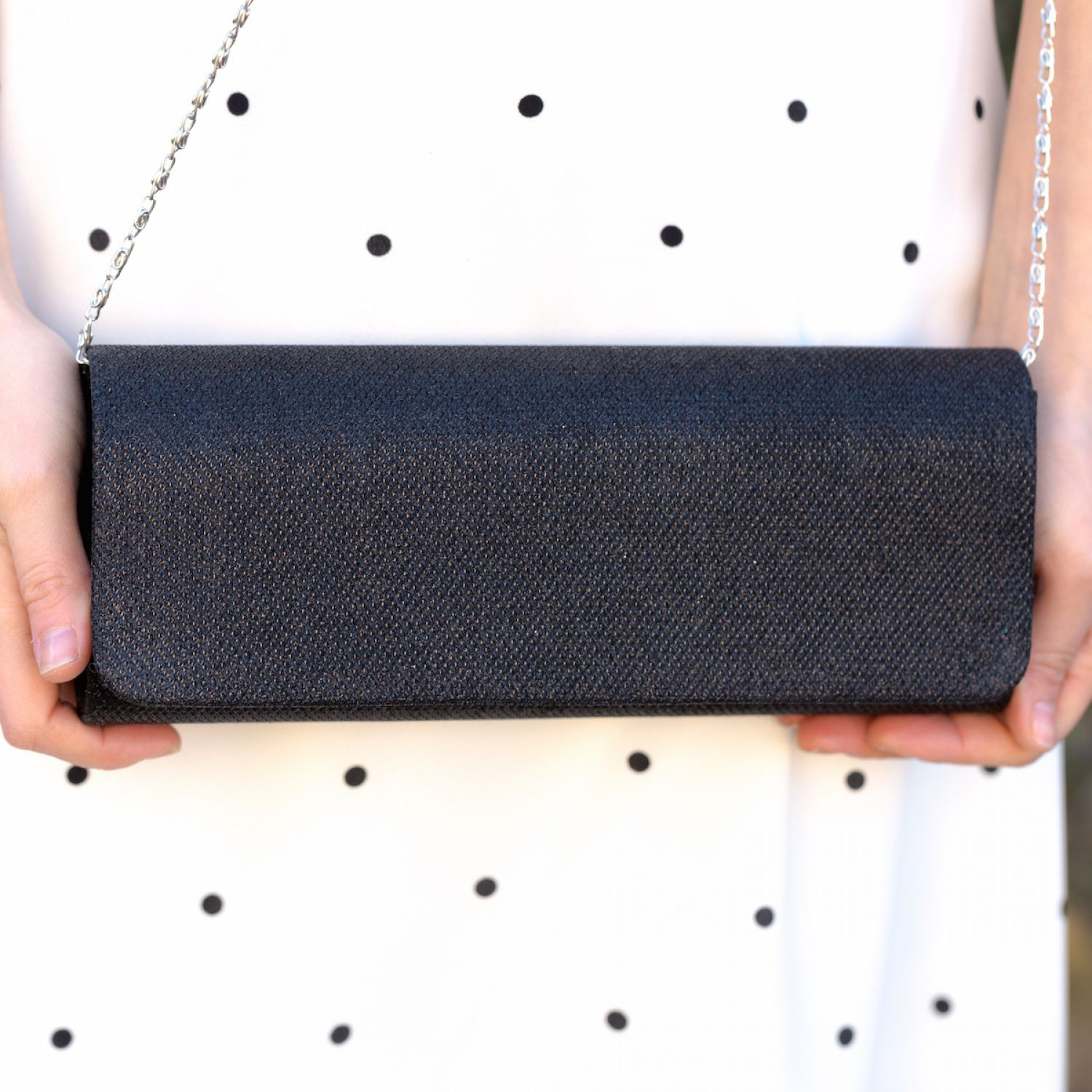 Plicul de ocazie negru cu paiete stralucitoare este accesoriul must-have pentru cele mai importante evenimente din viata ta.
