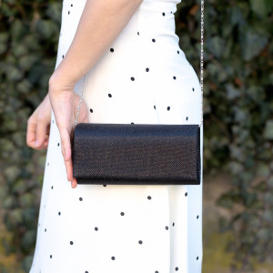 Plicul de ocazie negru are un singur compartiment in care poti pastra obiectele personale.
