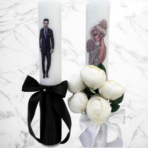 Comanda acum produsul "Set lumanari nunta mireasa blonda cu decor alb".