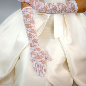 Manusile din dantela alba pot fi purtate la nunti traditionale si clasice, ele fiind accesoriul perfect pentru nemuritoarele rochii de mireasa albe.